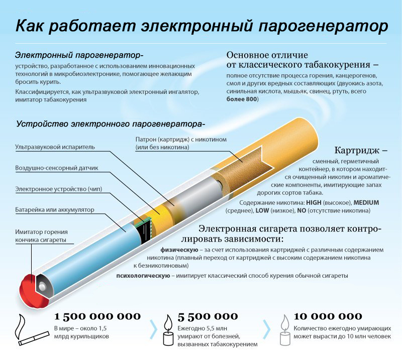 Большинство электронных парогенераторов имеет цилиндрическую форму, хотя в последнее время входят в моду прямоугольные формы. Новое поколение электронных парогенераторов называют моды. Внешне они перестали повторять внешний вид традиционных сигарет, имеют большую производительность, более высокую мощность аккумулятора, становятся более громоздкими.