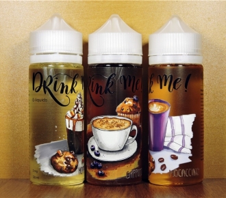 Drink Me – инновационная линейка жидкостей для электронных сигарет от российского производителя. Серия вобрала сразу несколько вариантов «утренних напитков» и предложила вейперам недорогую продукцию с разноплановыми сочетаниями. Красивые стилизованные этикетки товара отражают содержимое и имеют всю необходимую информацию. Жижи поставляются в каноничных флаконах объемом 120 мл формата Chubby Gorilla. Соотношение VG/PG осталось неизменным – 70/30. Такой подход придется по душе любителям клаудчейзинга и просто фанатам густого насыщенного пара.